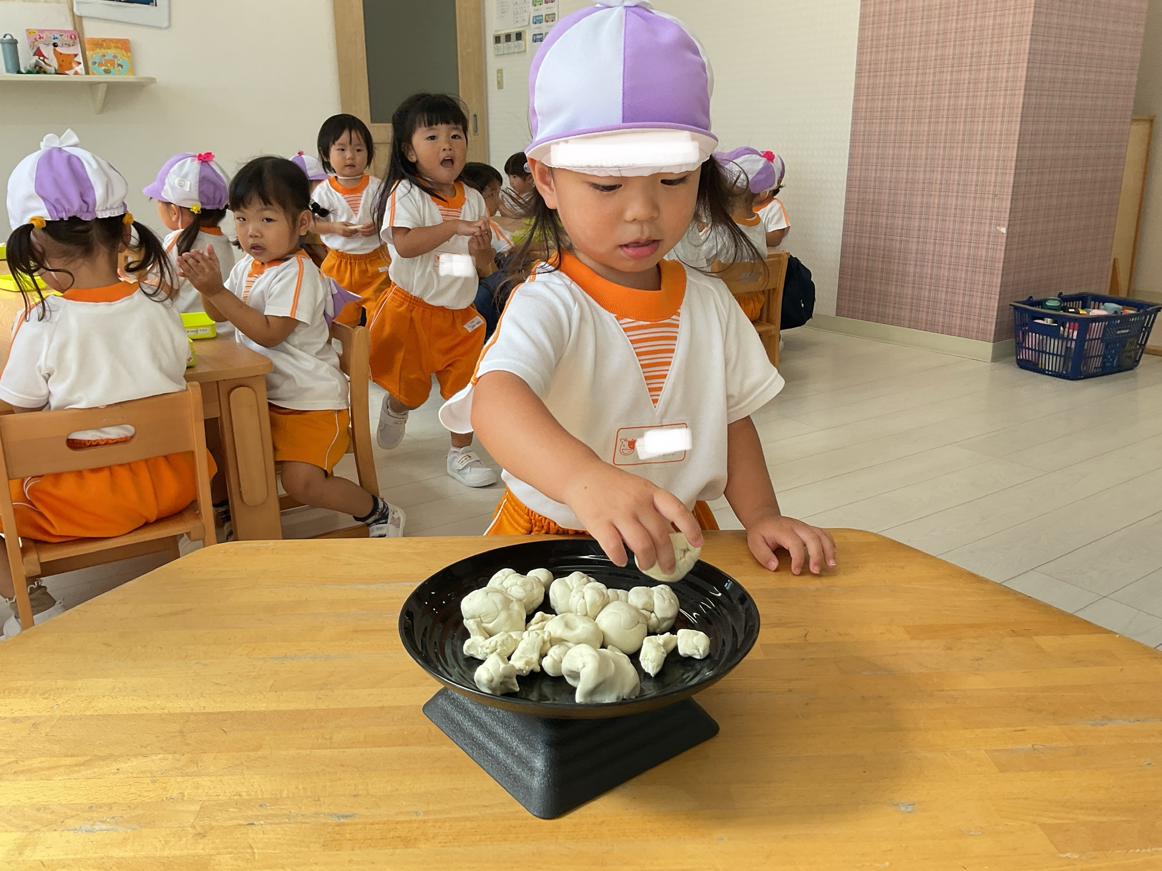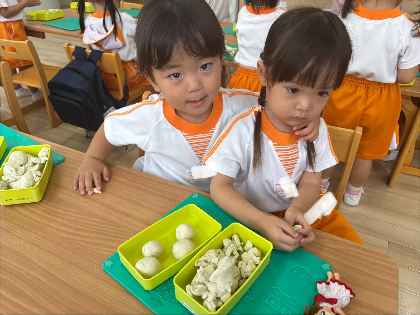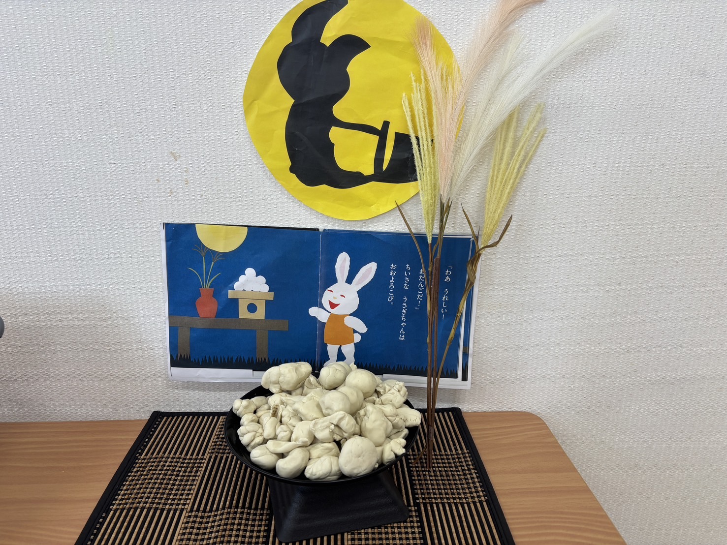 今年の十五夜は、10月6日月曜日です。クレヨンでも、子どもたちに十五夜のお話をしたり、絵本を見たりしています。今日は、粘土を使って、お団子作りをしました。『おいしくなあれ!』と言いながら、心を込めて作りました♪