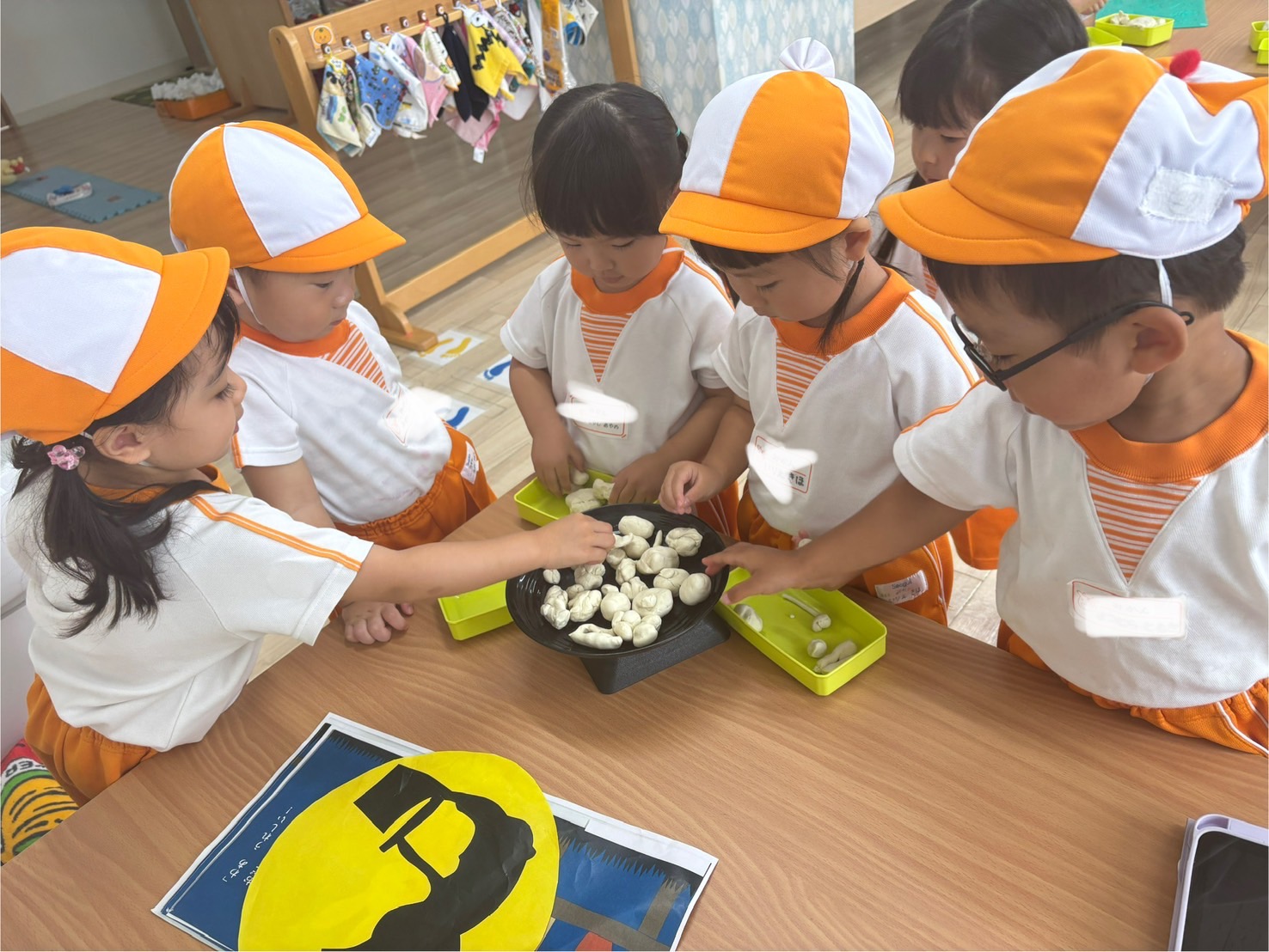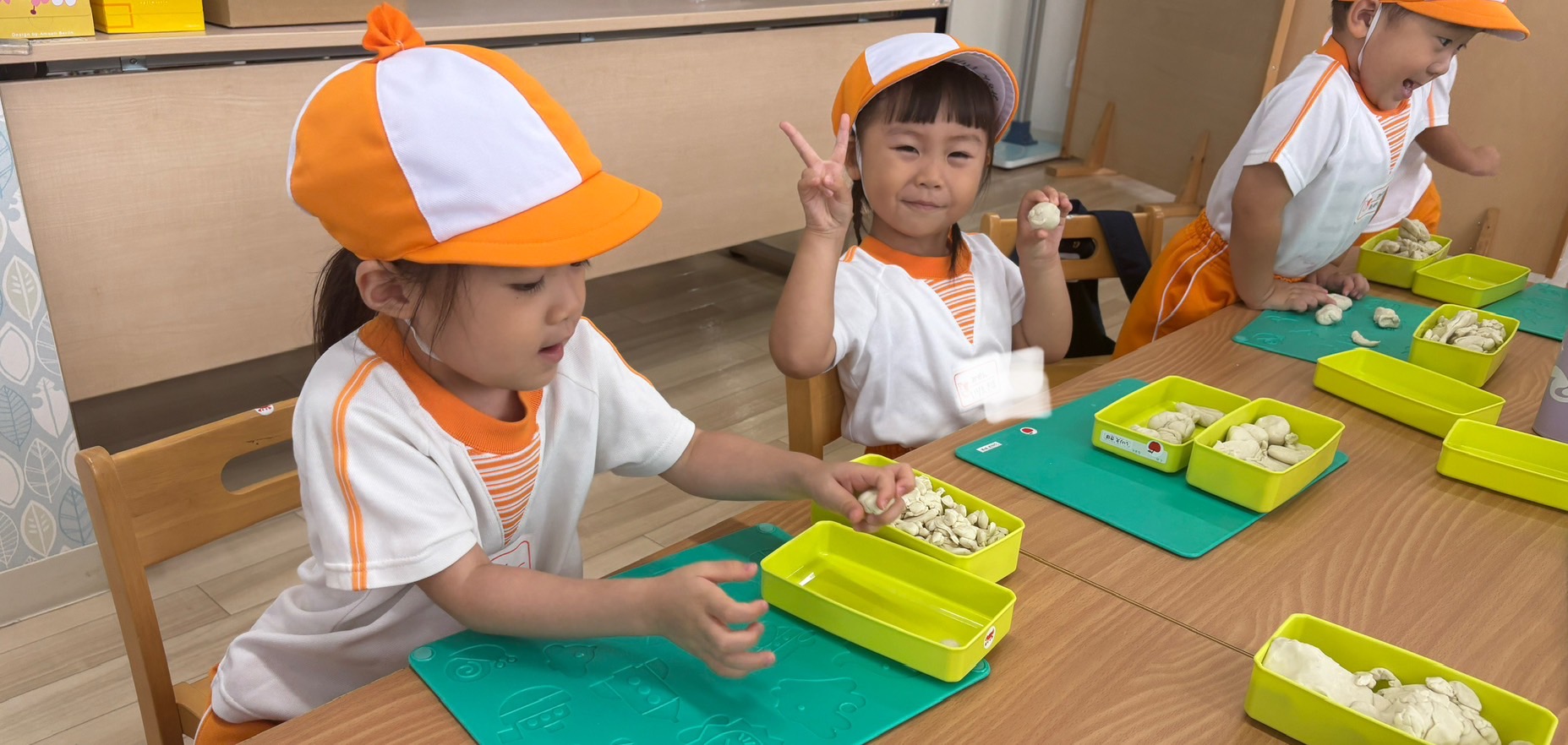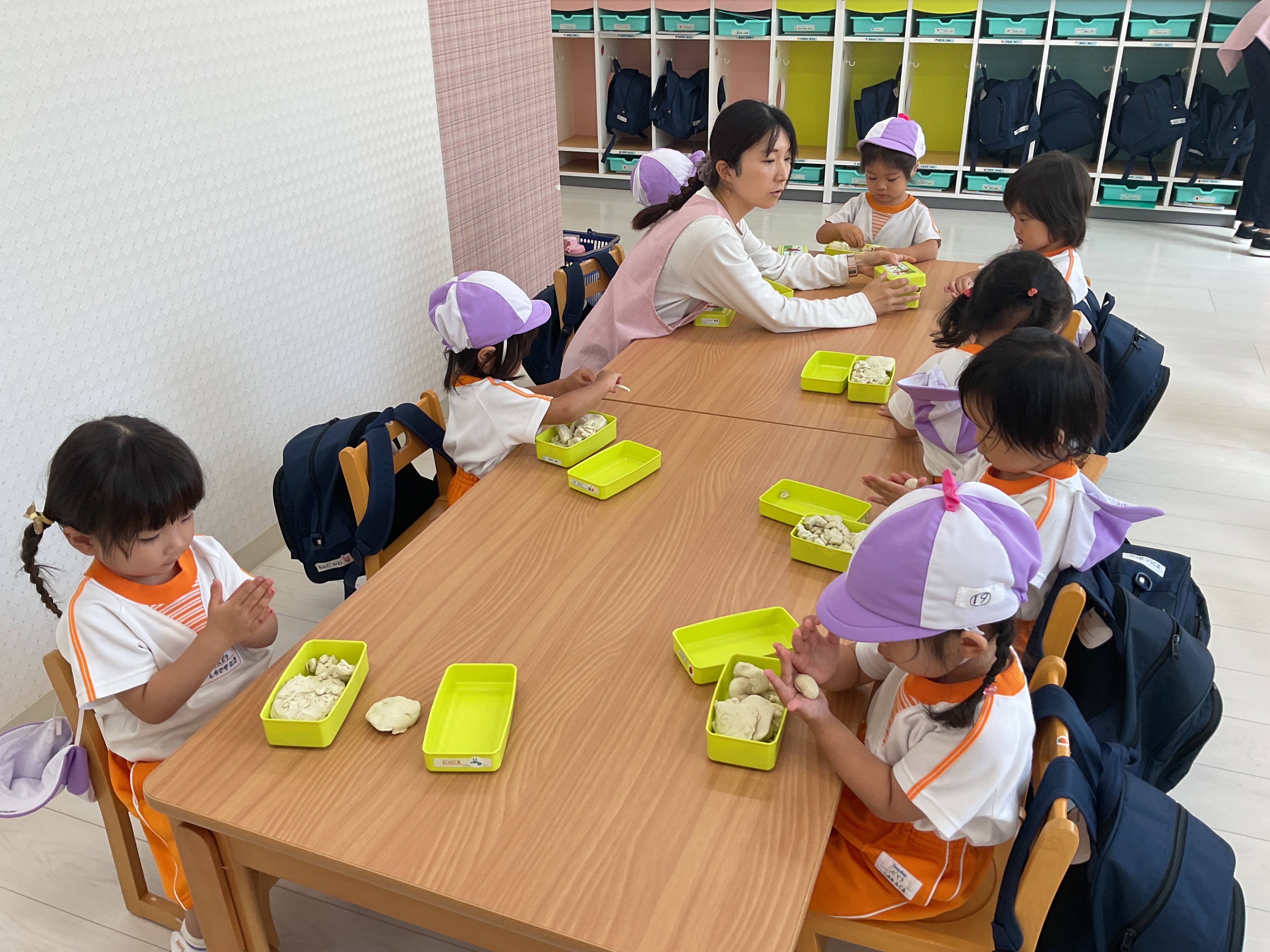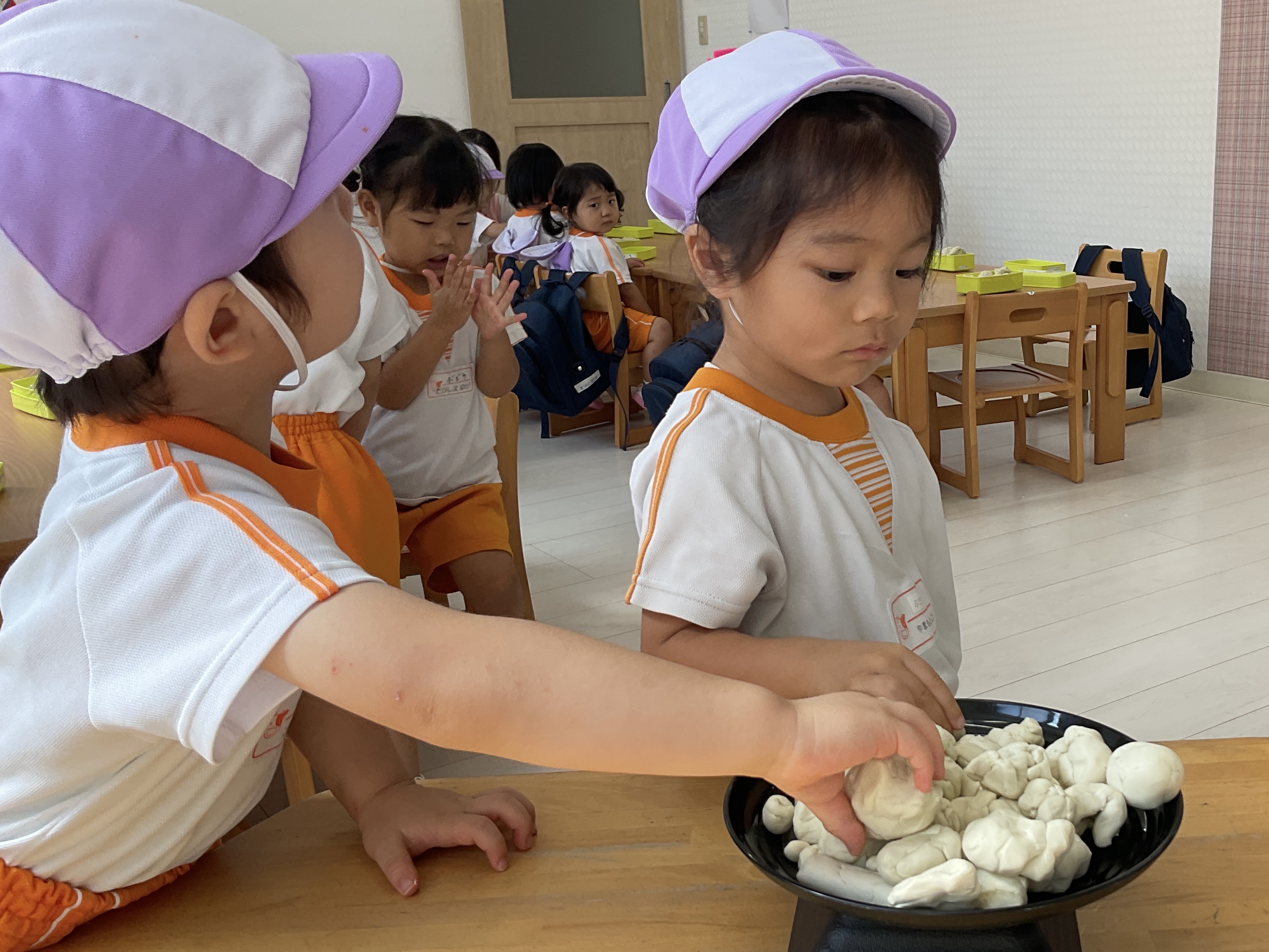 今年の十五夜は、10月6日月曜日です。クレヨンでも、子どもたちに十五夜のお話をしたり、絵本を見たりしています。今日は、粘土を使って、お団子作りをしました。『おいしくなあれ!』と言いながら、心を込めて作りました♪