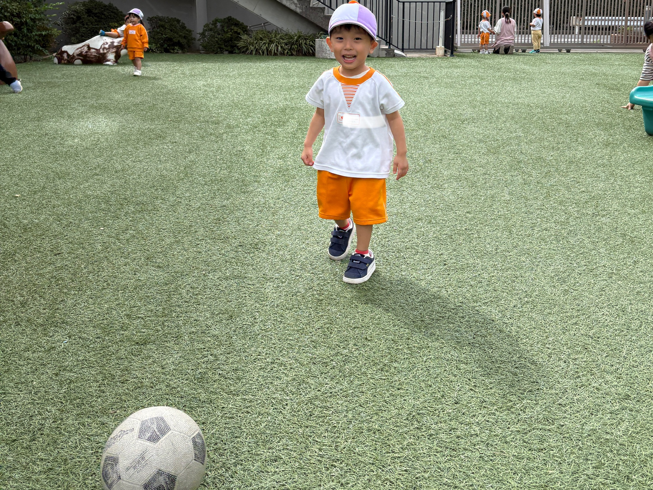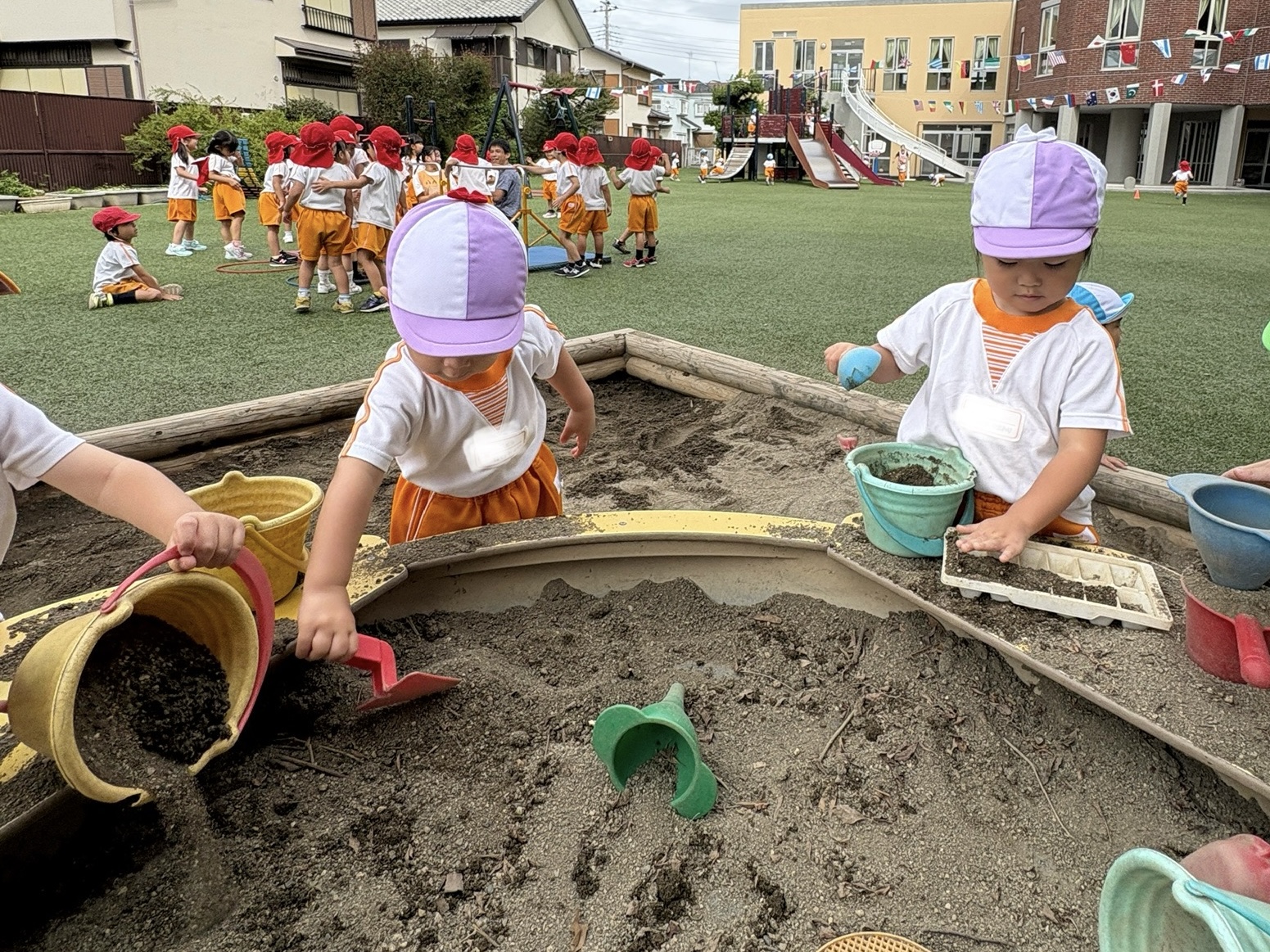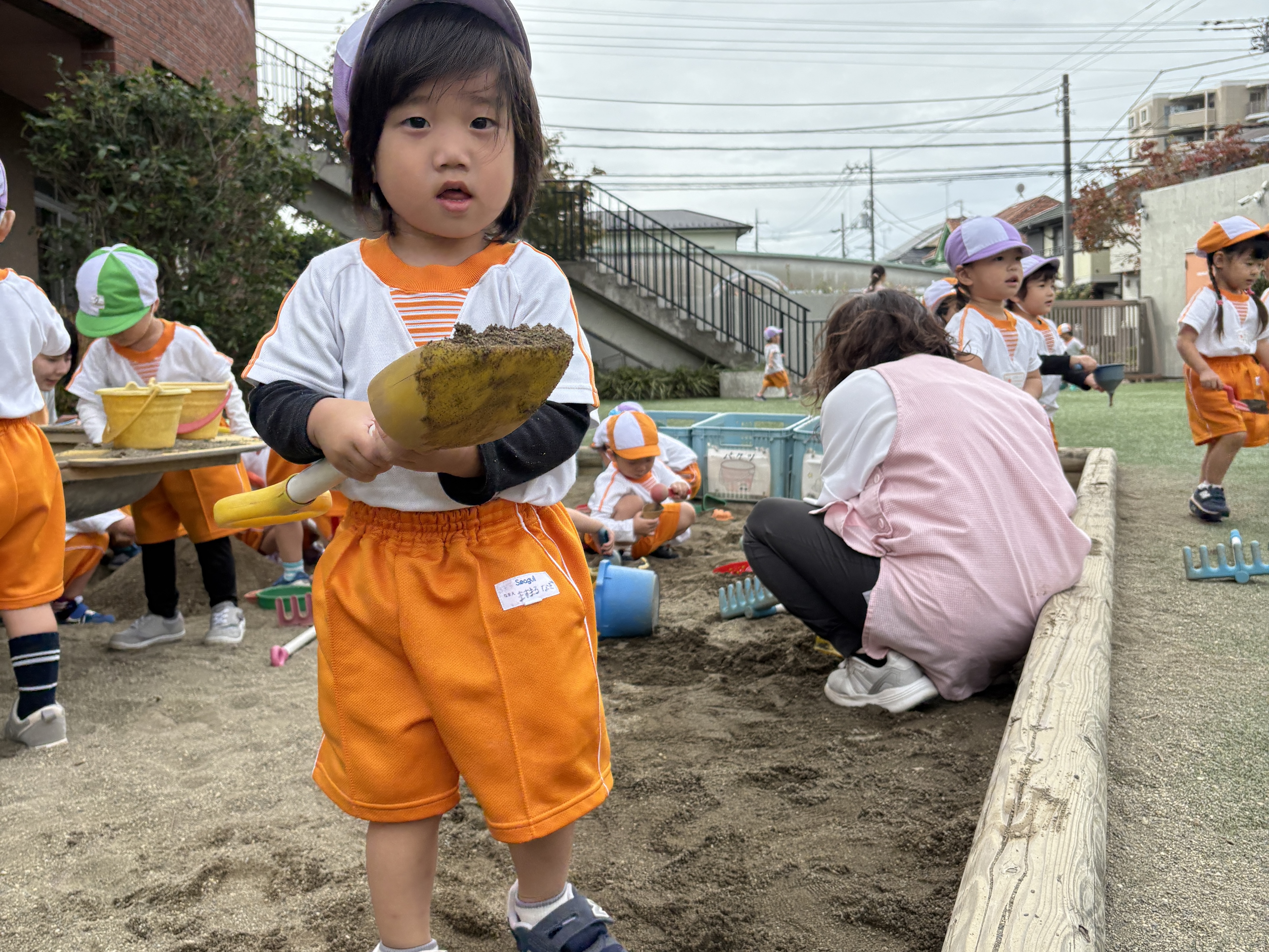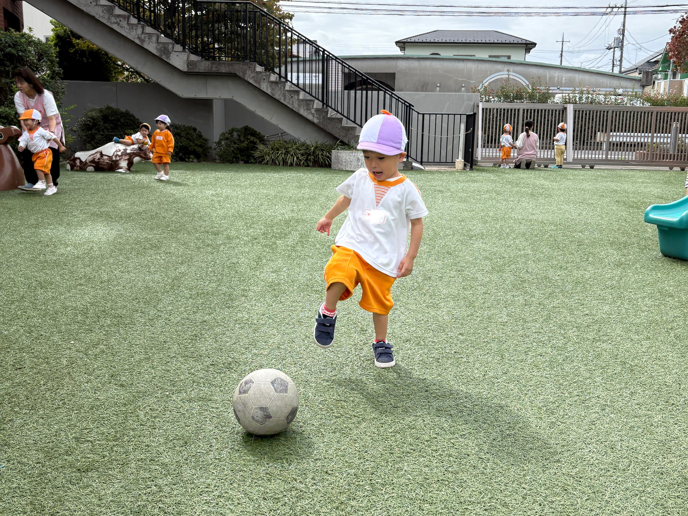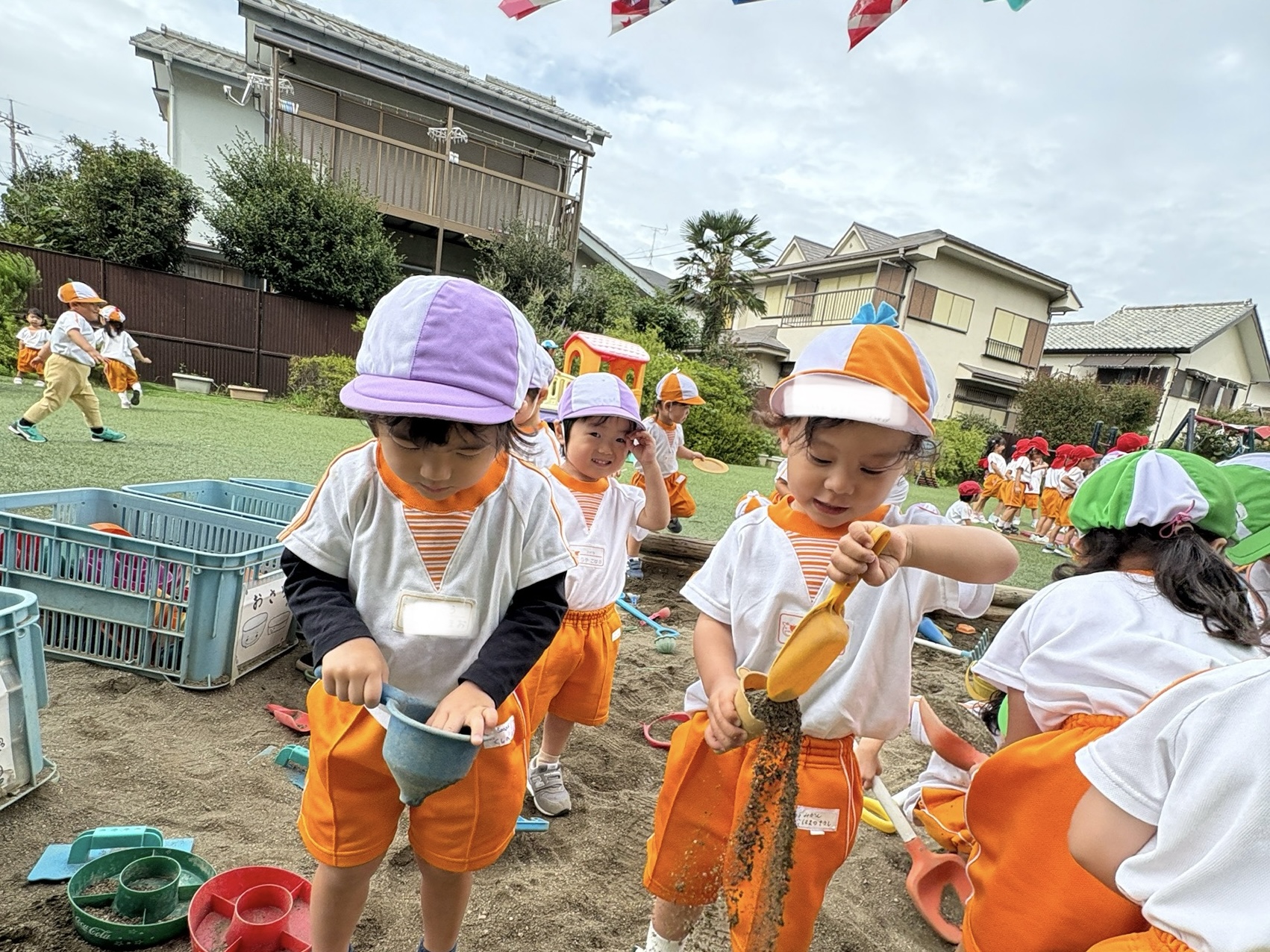 秋の風が吹き、園庭遊びが気持ちのいい季節になりました!砂場、ボールにかくれんぼ!園庭でたっぷり遊んでいます。