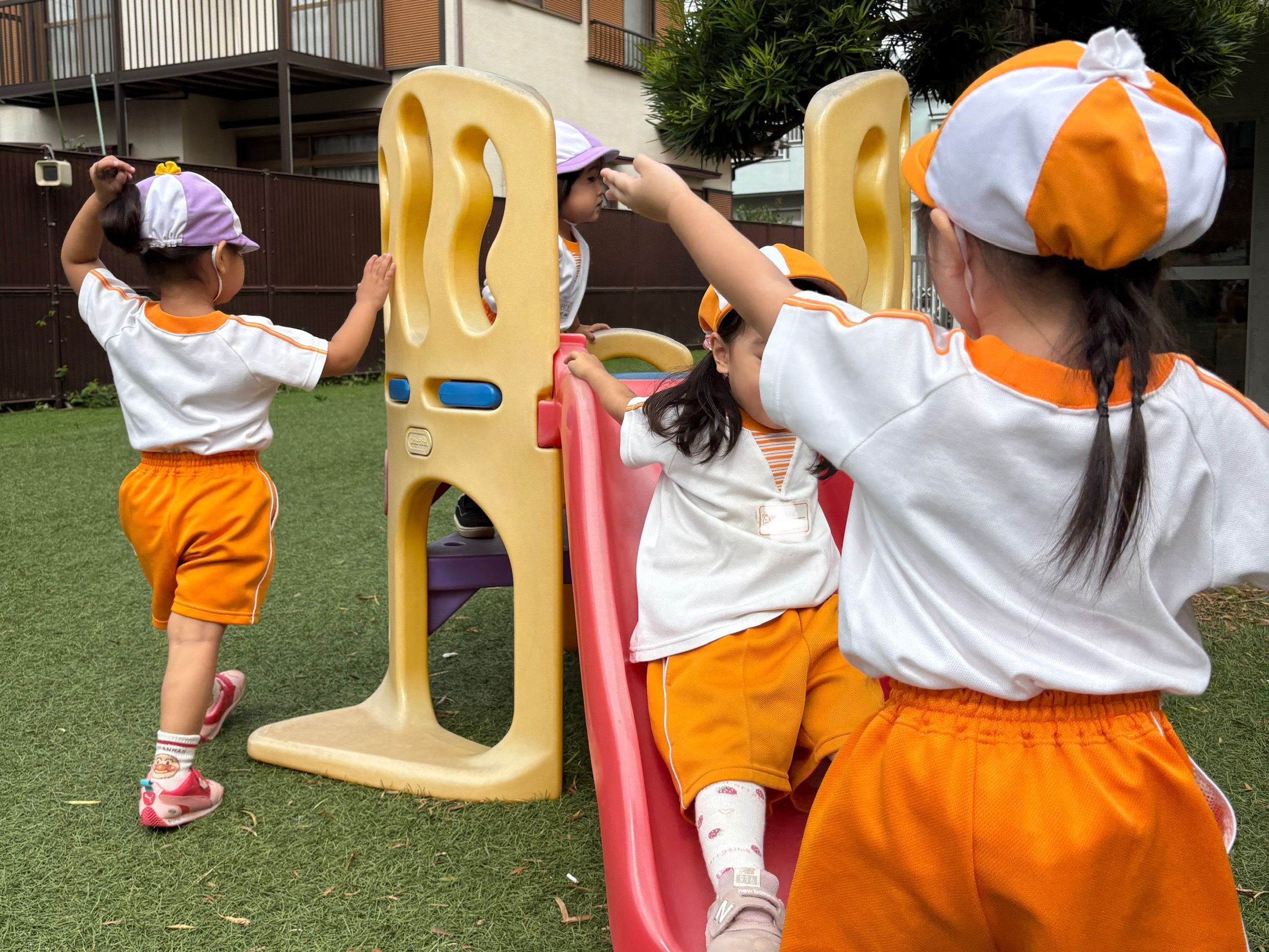 クレヨンでは、クレヨンの砂場で遊んだり、園庭で思い切り遊んだり、特養ホームのベランダにお散歩に行ったり…様々な所たくさん遊んでいます!