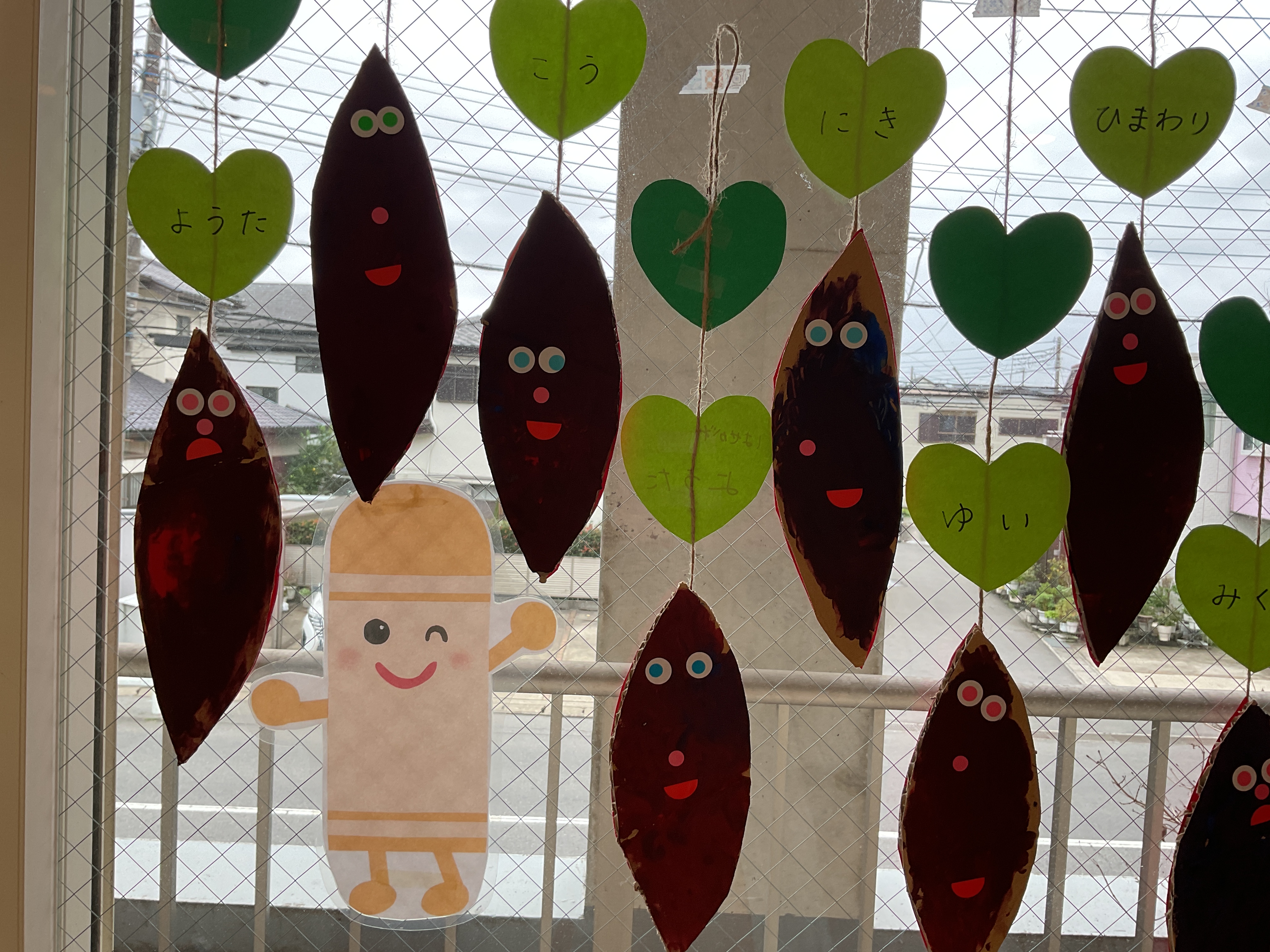 表情豊かで、おいしそうなさつまいもも出来上がりました。今はエントランスに飾ってあります。